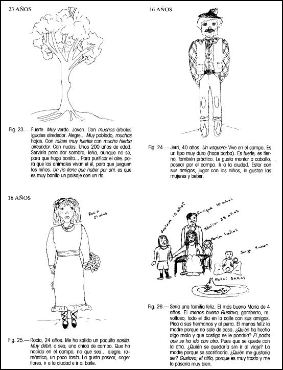 Como contraste la figura femenina,, hecha en segundo lugar, la presenta devalorada y carente de interés: "Sosita..., un poco tonta..., le gusta pasear y coger flores". Haciendo clara diferencia al modelo internalizado de la madre (fig. 25).