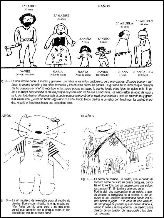 Lo femenino viene a ser lo depresivo, lo "bueno y sacrificado" de la madre, que cuida y no abandona a los hijos. Lo masculino sería lo deseable y divertido, pero a través del modelo ausente y abandonante del padre, sólo puede ser vivido como "malo e infeliz". "¿Si formases parte de ésta familia quién te gustaría ser? El niño, porque es muy trasto y me lo pasaría muy bien".