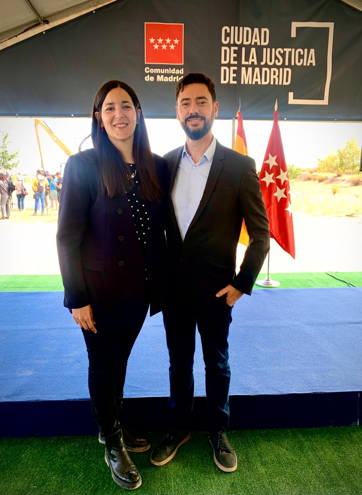 Los Vocales de la Junta de Gobierno Ana Martínez y Félix Arias asisten al acto de inicio de las obras de la Ciudad de la Justicia de Madrid, proyecto que unificará 26 sedes judiciales hasta ahora repartidas por toda la Comunidad de Madrid.