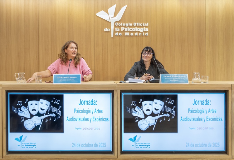 El primer bloque estuvo dedicado a experiencias en Psicología Audiovisual y Escénica, con la participación de Llanos de Miguel, psicóloga y bailarina; Andrés Valera, actor, director y educador social; Paula Martín, actriz de Amás Escena; José Manuel Carrasco, director de cine; y Tania Ugía, psicóloga y actriz de doblaje. Los ponentes compartieron testimonios sobre sus trayectorias y la integración de la Psicología en los procesos creativos y de acompañamiento artístico.