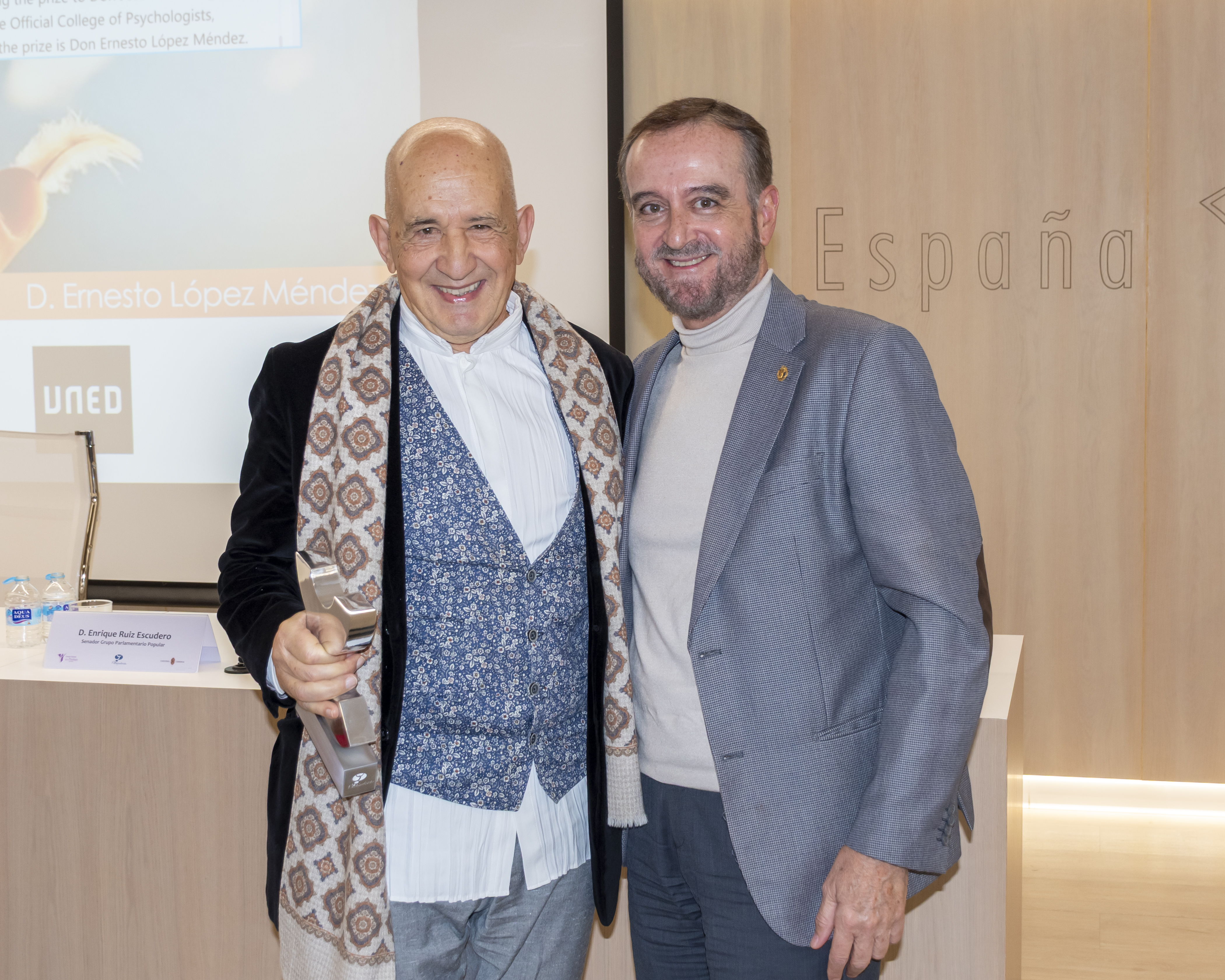 El Premio a toda una vida dedicada a la Psicología ha sido compartido, concediéndose dos distinciones: la primera, al colegiado de Madrid Miguel Costa Cabanillas (siendo recogido por su hija y su nieta), mientras que la segunda distinción de este premio recayó en el colegiado jubilado Ernesto López Méndez. Miguel Costa falleció recientemente, una pérdida que nos deja un vacío irreparable. D.E.P.