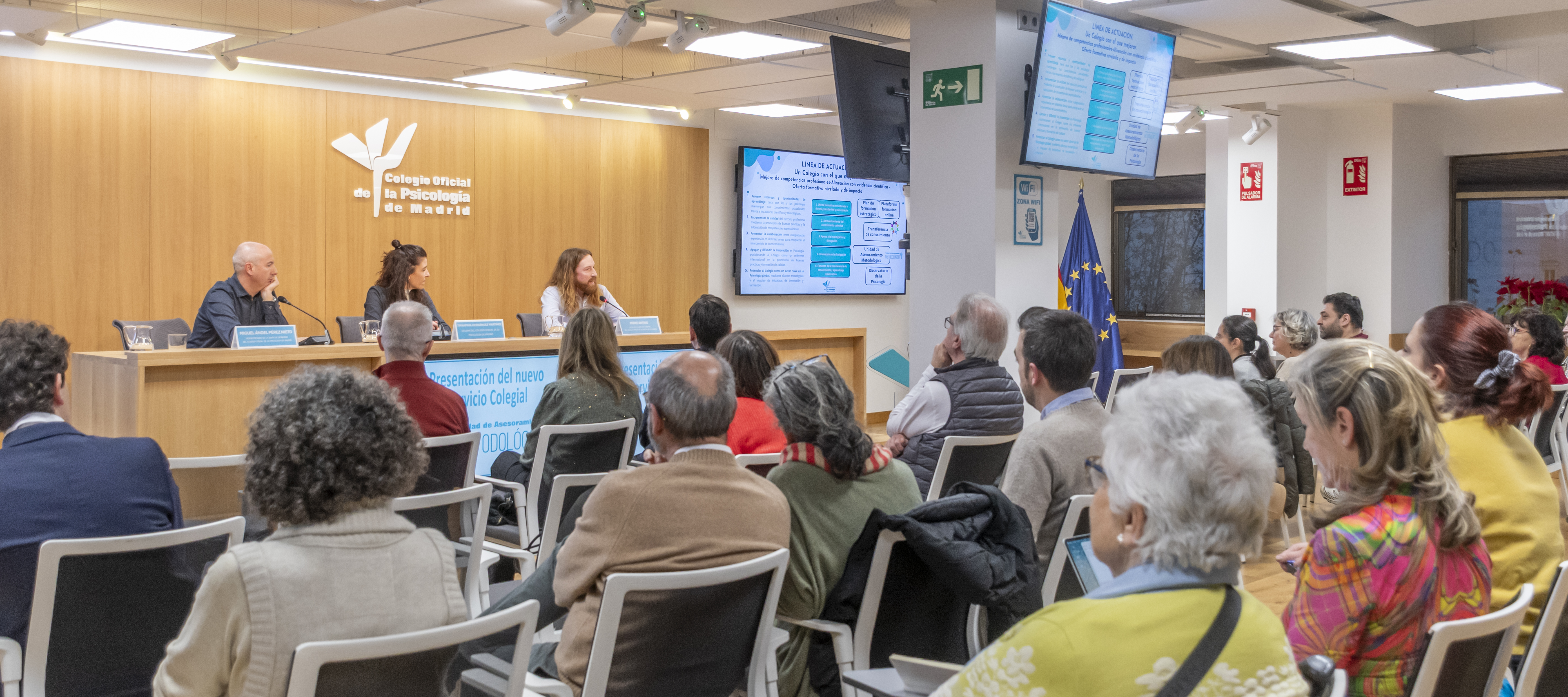Durante la presentación de la unidad, la Decana, Timanfaya Hernández, y los coordinadores del proyecto Miguel Ángel Pérez, Vicesecretario de la Junta de Gobierno, y Mirko Antino, Vocal, incidieron en la necesidad de favorecer la actualización profesional, impulsar el pensamiento crítico y brindar claves para integrar la toma de decisiones basadas en evidencia en la práctica cotidiana.