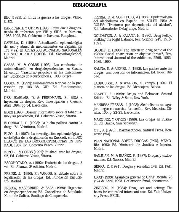 4 Ver "Dos tercios de los españoles critican la política oficial para prevenir las drogas", en El Correo Español-El Pueblo Vasco 2/2/94 Bilbao